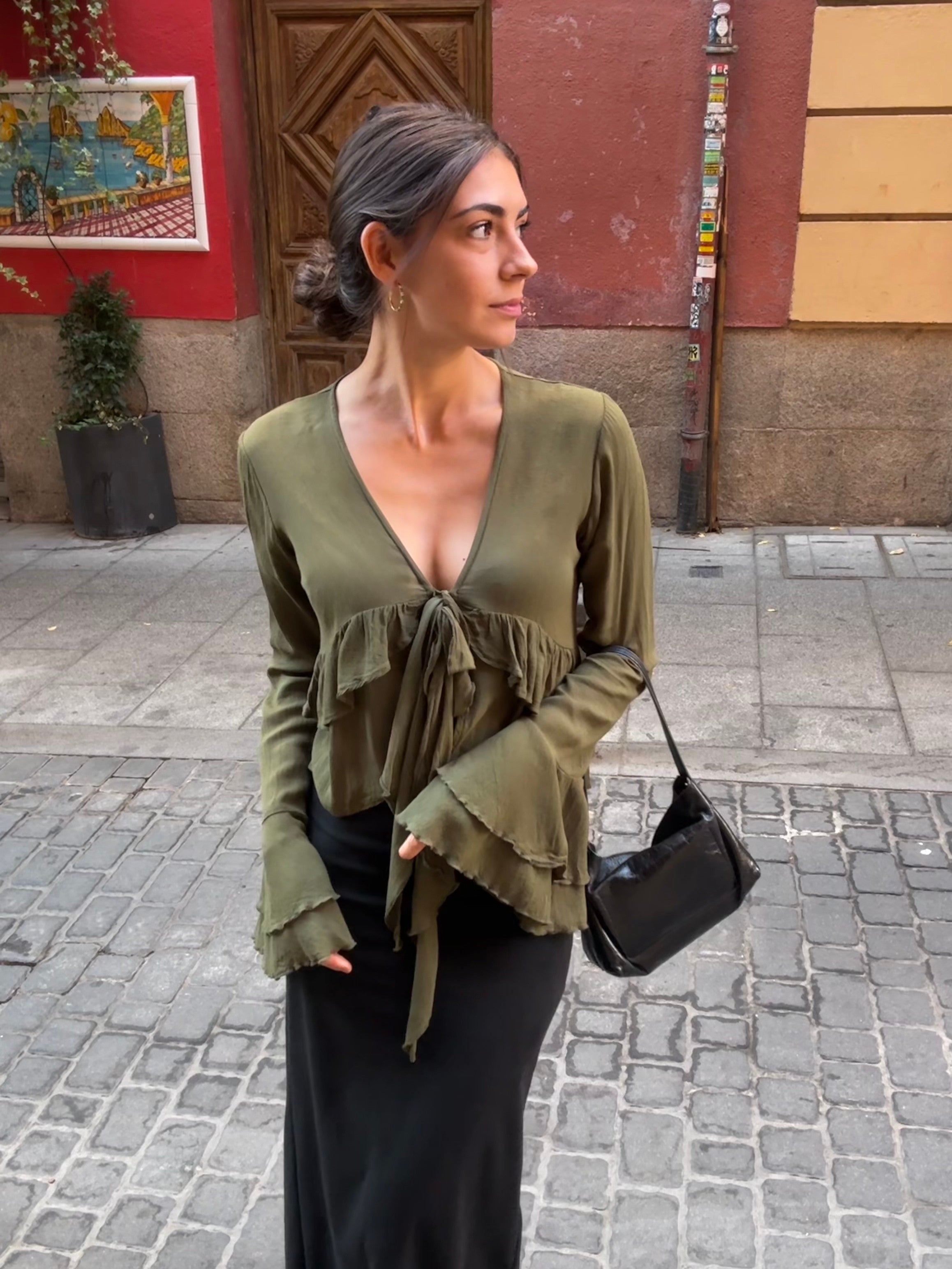 La Giverny Blouse se inspira en una de nuestras prendas insignia, adaptándose al uso diario sin perder los icónicos volantes y el tejido sedoso de Safair. Esta blusa cuenta con un pequeño lazo a la altura de la cintura, permitiendo ajustarla o dejarla abierta, mientras que el volante principal cae en el centro, aportando un toque distintivo. Esta blusa cuenta con dos lazos par que puedas cerrar por completo, semi-cerrar o llevarla abierta a modo de chaquetilla.
